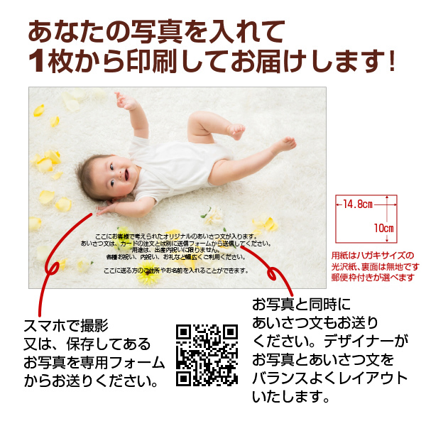 送信いただいた写真をデザイナーが加工・レイアウトし素敵なカードに仕上げます。
