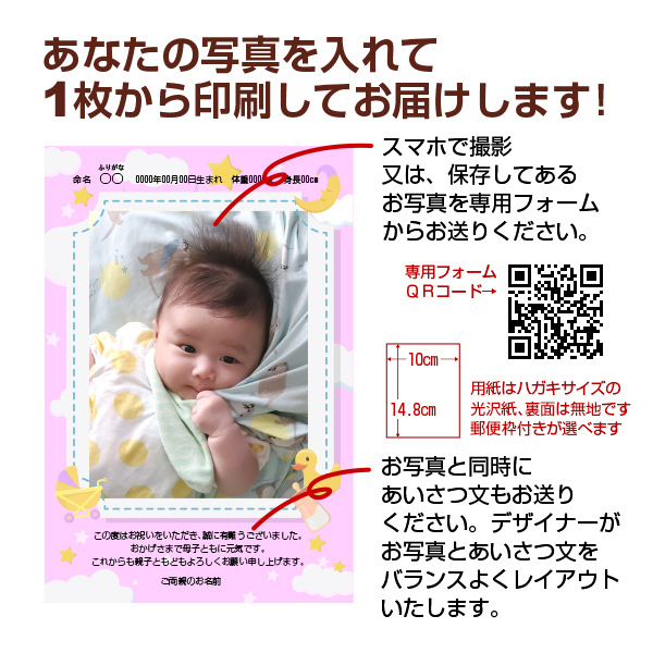 メッセージカード 写真入り 出産内祝 かわいい 出産報告 ポストカード 女の子 タテ