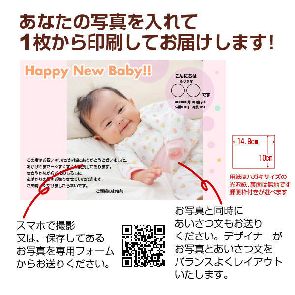 送信いただいた写真をデザイナーが加工・レイアウトし素敵なカードに仕上げます。