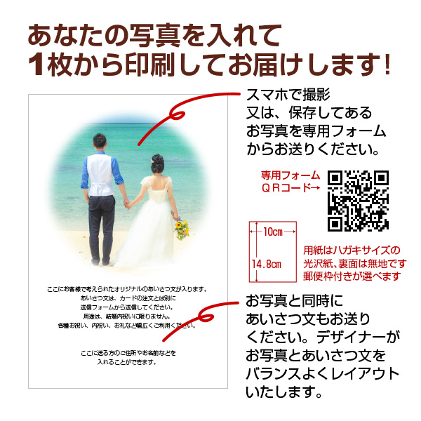 送信いただいた写真をデザイナーが加工・レイアウトし素敵なカードに仕上げます。