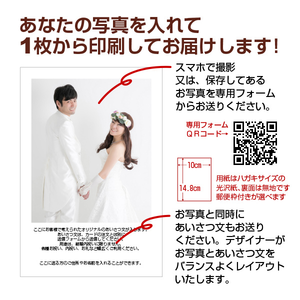 送信いただいた写真をデザイナーが加工・レイアウトし素敵なカードに仕上げます。