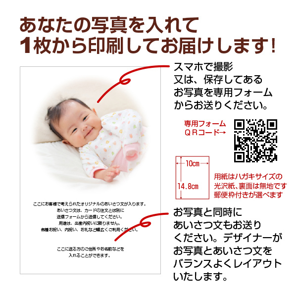 送信いただいた写真をデザイナーが加工・レイアウトし素敵なカードに仕上げます。