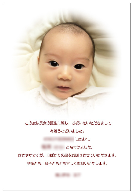 結婚内祝、出産内祝に写真入りオリジナルメッセージカードでご挨拶