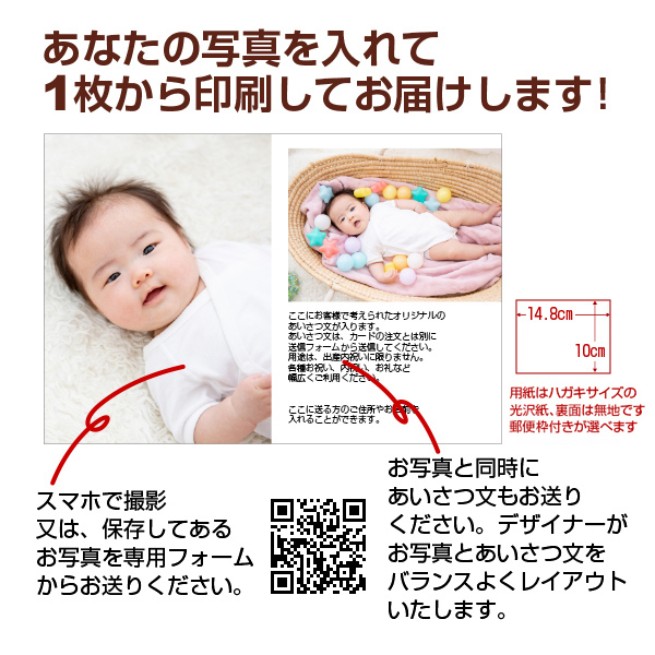 送信いただいた写真をデザイナーが加工・レイアウトし素敵なカードに仕上げます。