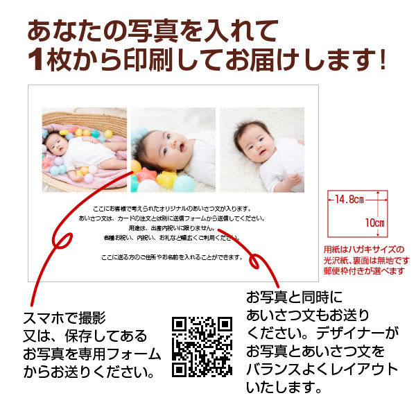 送信いただいた写真をデザイナーが加工・レイアウトし素敵なカードに仕上げます。