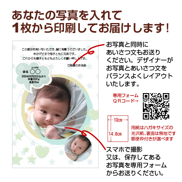 メッセージカード 出産内祝 写真入り お礼状に最適 かわいい オリジナルカード 男の子 タテ(写真2枚タイプ)