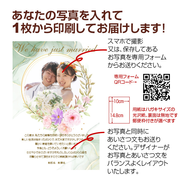 ウエディング メッセージカード おしゃれな結婚内祝ハガキ グリーティングカード