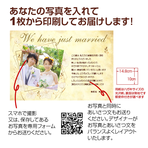 送信いただいた写真をデザイナーが加工・レイアウトし素敵なカードに仕上げます。